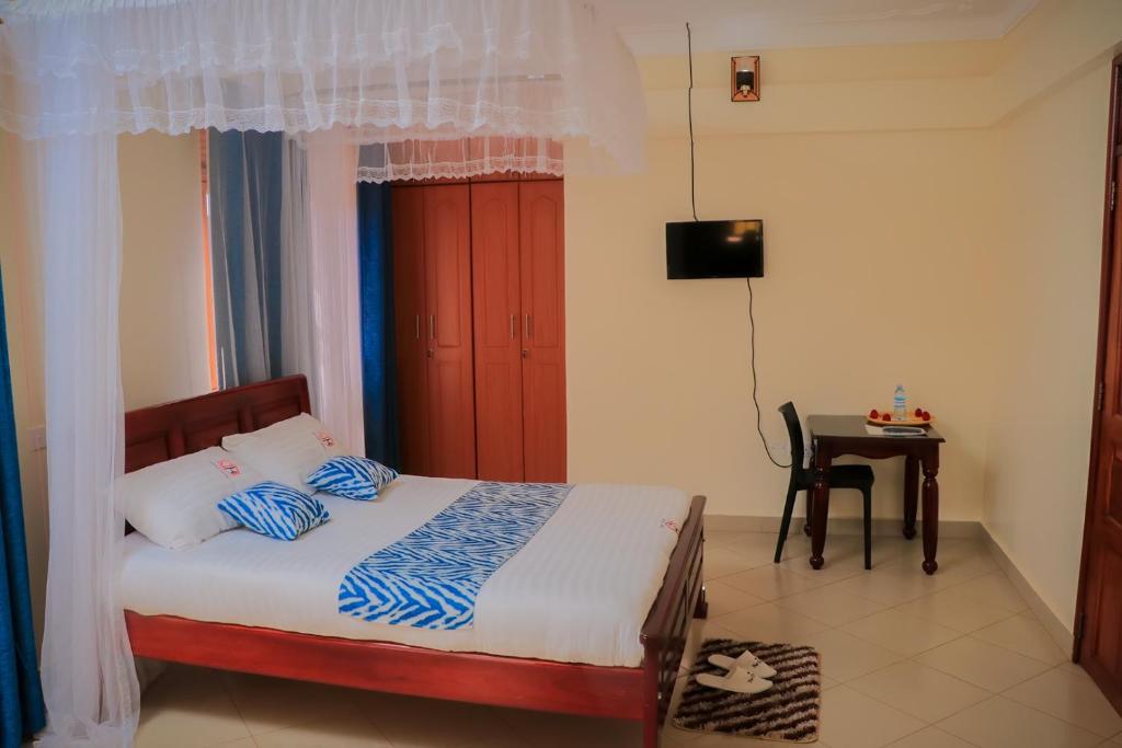 bathrooms, balconies, and mountain views. Each room includes a work desk, TV, and free WiFi. Dining and Leisure: Guests can enjoy a traditional restaurant serving African cuisine, a bar, and a terrace. The hotel provides a garden and outdoor dining area, perfect for relaxation. Convenient Location: Located 29 mi from Lake Mburo National Park, the hotel is located on a quiet street. Highly rated by guests, it offers a 24-hour front desk and room service.