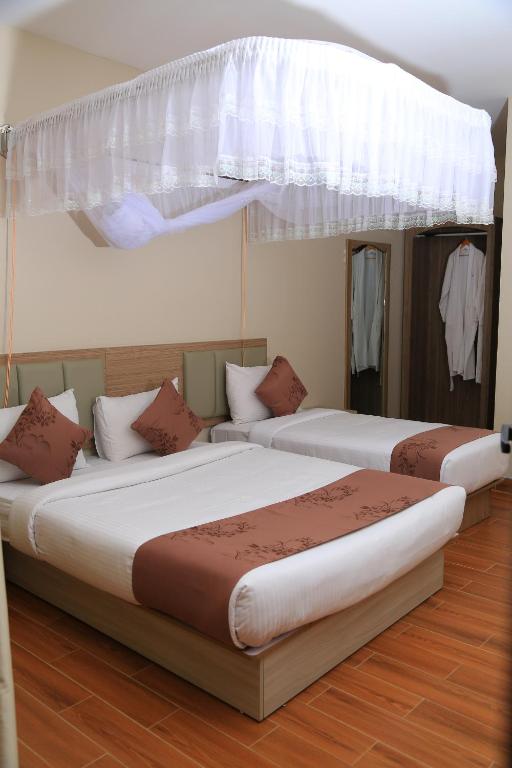 Comfortable Accommodations: Hotel Next in Masaka offers family rooms with air-conditioning, private bathrooms, and city views. Each room includes a work desk, free toiletries, and a TV. Dining Options: Guests can enjoy a terrace, restaurant, and bar. The family-friendly restaurant serves African, Indian, Italian, pizza, and barbecue grill cuisines in a modern and romantic ambiance. Breakfast includes continental, buffet, à la carte, full English/Irish, and vegetarian options. Amenities and Services: The hotel provides free WiFi, a paid airport shuttle service, 24-hour front desk, housekeeping, room service, and free on-site private parking. Additional services include full-day security and interconnected rooms.